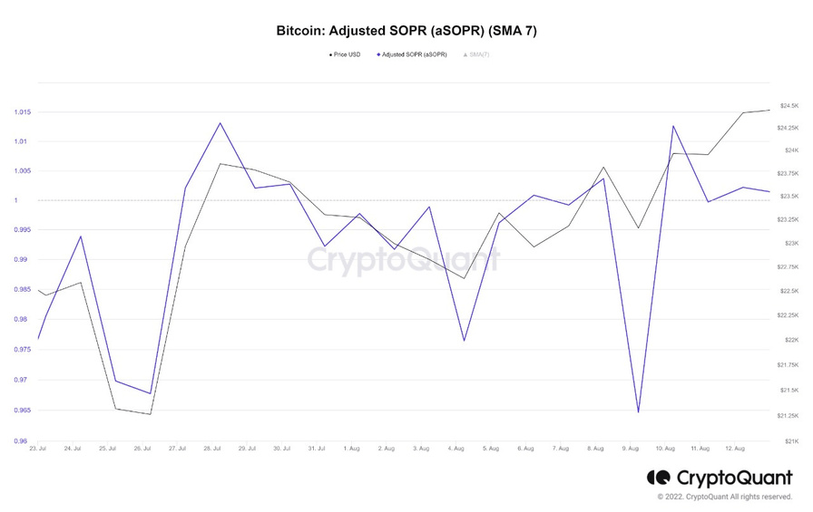 The Adjusted SOPR filters out transactions that are younger than 1 hour, thus,