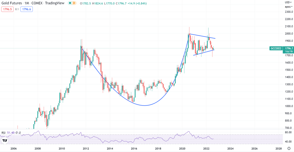 monthly trend for Gold has formed a Cup & handle pattern. The next resistance is