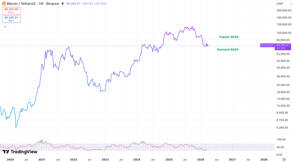 $BTC corrected 6.8% and closed at 67.86K in the last week. The immediate support is expected at $60K and resistance is expected at $83K. Bitcoin is expected to gain this week.