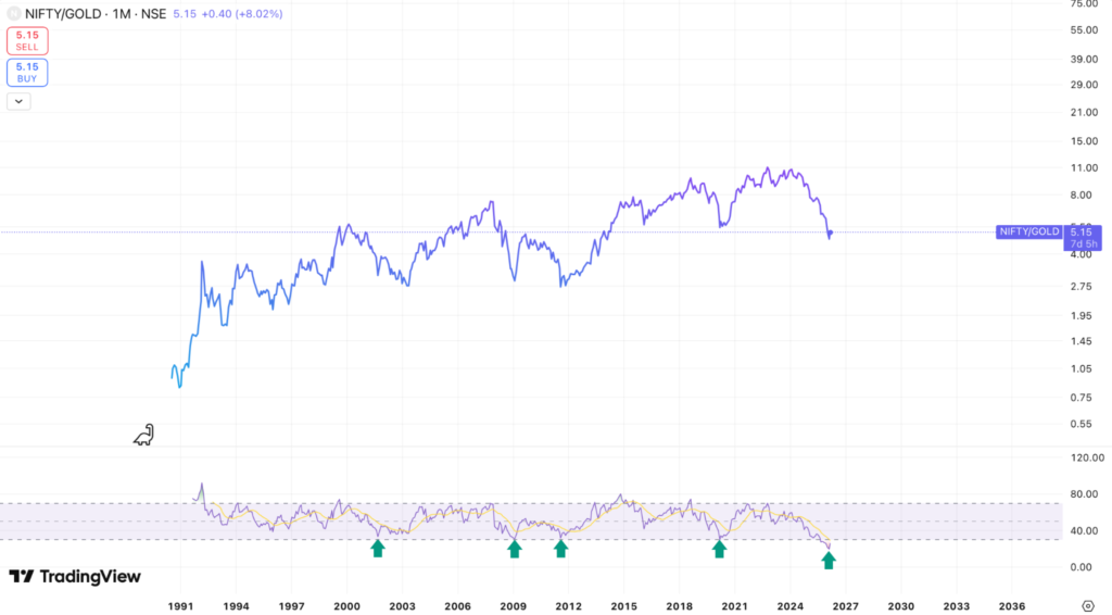 The Nifty50 Index remained flat and closed at 23,115 in the last week. Above chart is Nifty vs Gold, Nifty has reached demand zone and we expect Nifty to perform better than Gold in coming weeks