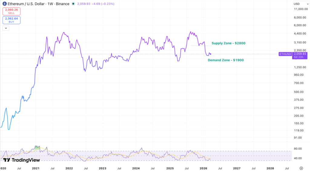 $ETH corrected 4.84% and closed at $2.1k in the last week. An immediate support is expected around $1900 and resistance is expected around $2800 levels. ETH is expected to gain this week