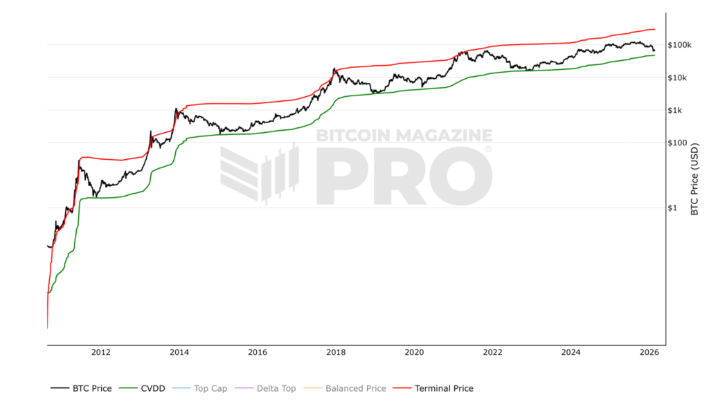 Bitcoin is expected to reverse from its downward trend. As per the Terminal price model, Bitcoin’s cycle top price prediction is around $297,000 and Bottom is around $47,000